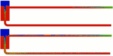 Solução NewGen: Um protótipo virtual em escala comercial foi construído com o intuito de predizer a transição entre os padrões de escoamento intermitente e bolhas dispersas no equipamento real de bombeio centrífugo submerso.