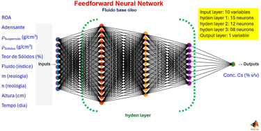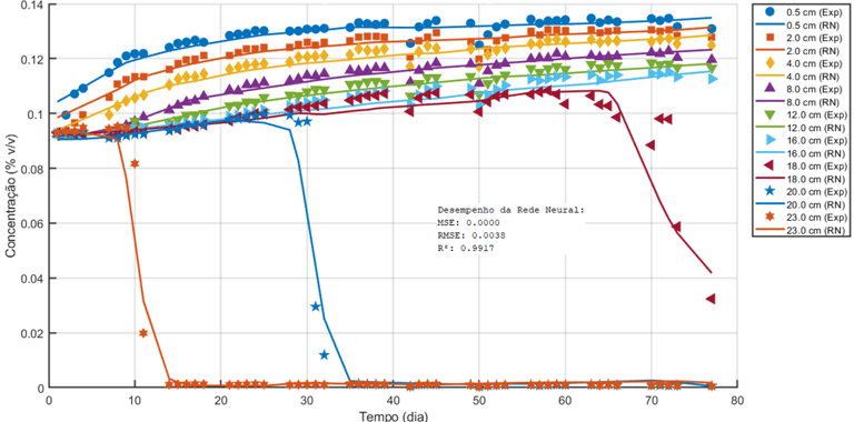 Solução NewGen: Modelo com redes neurais para estimar perfis de concentração de sólidos adensantes ao longo do tempo e altura.